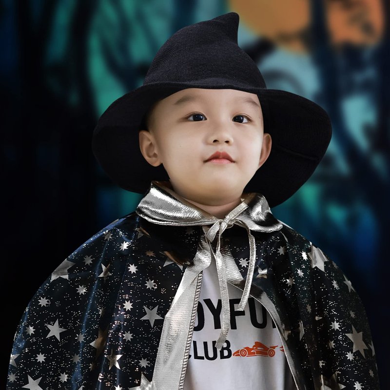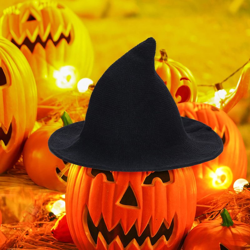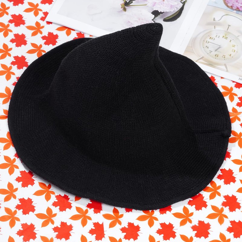 tiggell Halloween Hat Wool Knitted Cap for Witch Girls Party Decor Masquerade Cosplay Costume Accessory Christmas Birthday (Black, Child)