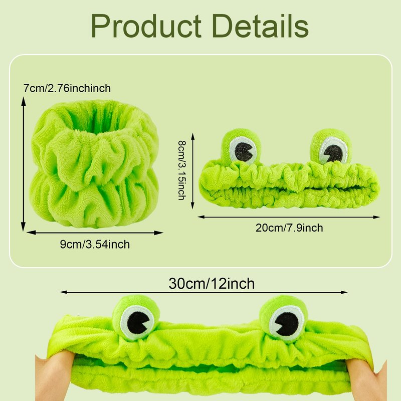 - VALUE SET: You will get 2pcs frog headbands for skincare + 4 pcs green wristbands for washing face, which you can share with your families.