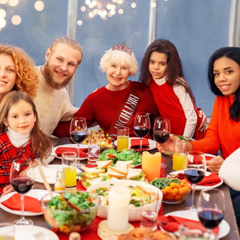 Tihebax Birthday Queen Sash & Rhinestone Tiara Red Sliver Crown Birthday Sash and Tiara for Women Girls Princess Tiara Crown Birthday Accessories Headband and Sash for Girls
