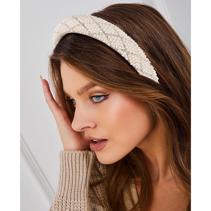- Novel Designed and Stylish: As a newly designed pearl headband in the market, this pearl headband for women features fashionable glitter rhinestones, white pearls and a padded band, suitable for all hair types.