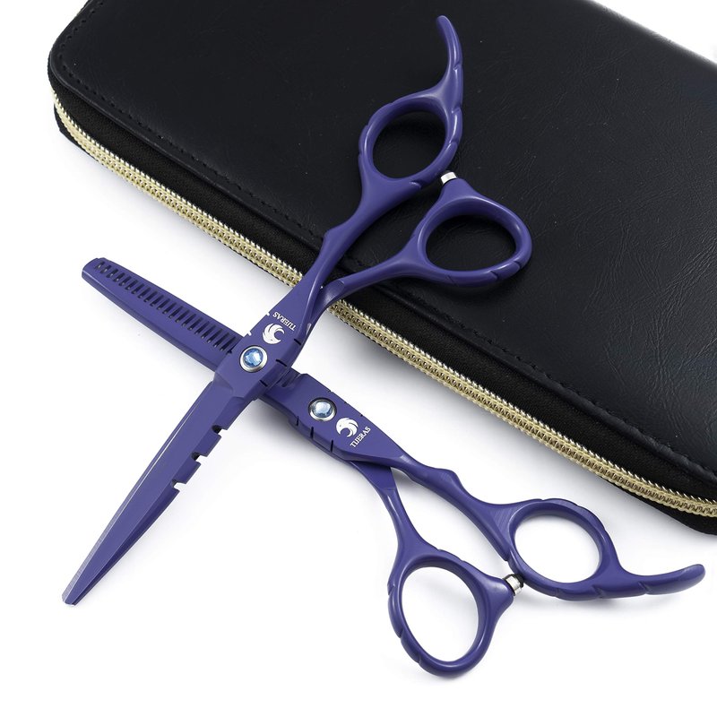 - Package included: 1 x regular hair scissors; 1 x texturing thinning scissors; 1x premium leather case.