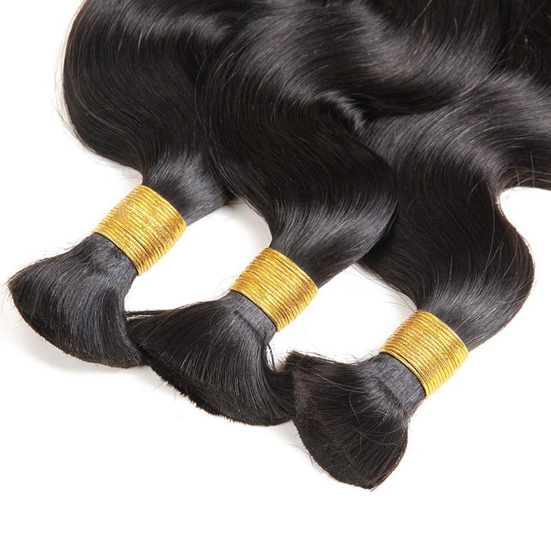 - Hair Material: Body wave Bulk Human Hair for Micro Braiding No Weft is made with 100% Raw and Unprocessed 12A Brazilian Virgin Human Hair. Cut off from one Young Donor Directly. Full Cuticle Intact and Aligned in the same direction.It's clean and soft, natural and healthy, bouncy and glossy, full and thick.