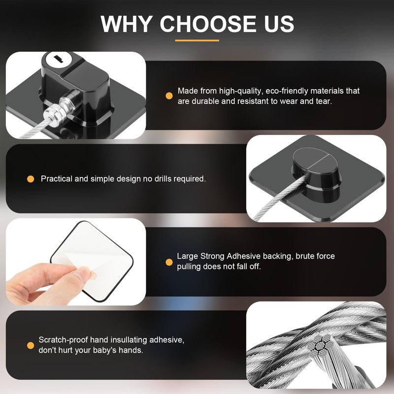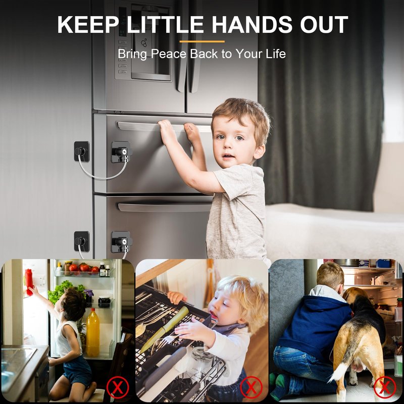 - STRONG & DURABLE CONSTRUCTION: Our fridge lock is made from high-strength steel wires and ABS, providing lasting durability and proven safety. You can trust that this refrigerator lock will withstand daily use and effectively protect your fridge from unwanted access.
