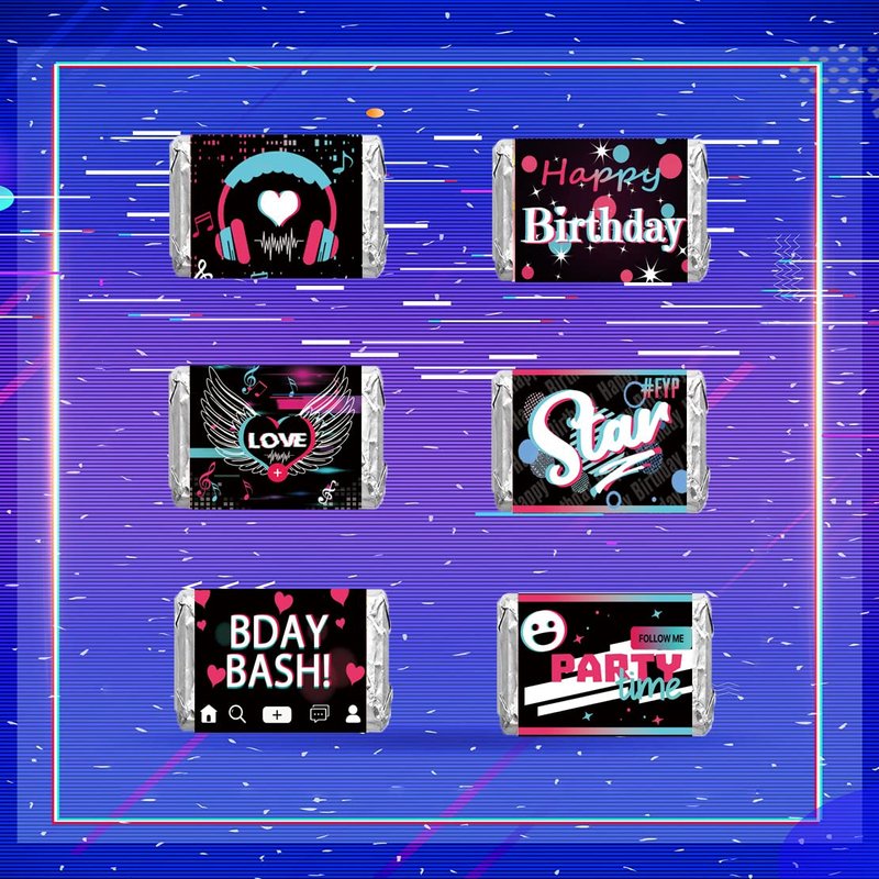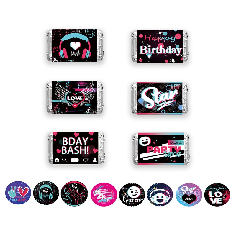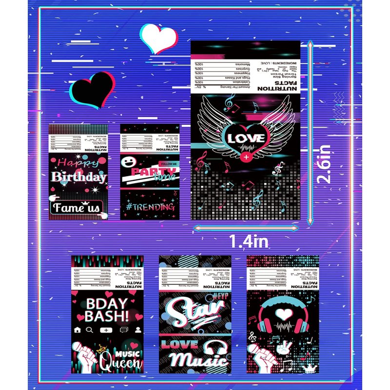 TIK Music Birthday Party Supplies,90 Pieces TIK Music Candy Wrappers,240 Pieces Favors Stickers Mini Kisses Candy Stickers Chocolate Drop Labels Wrappers.