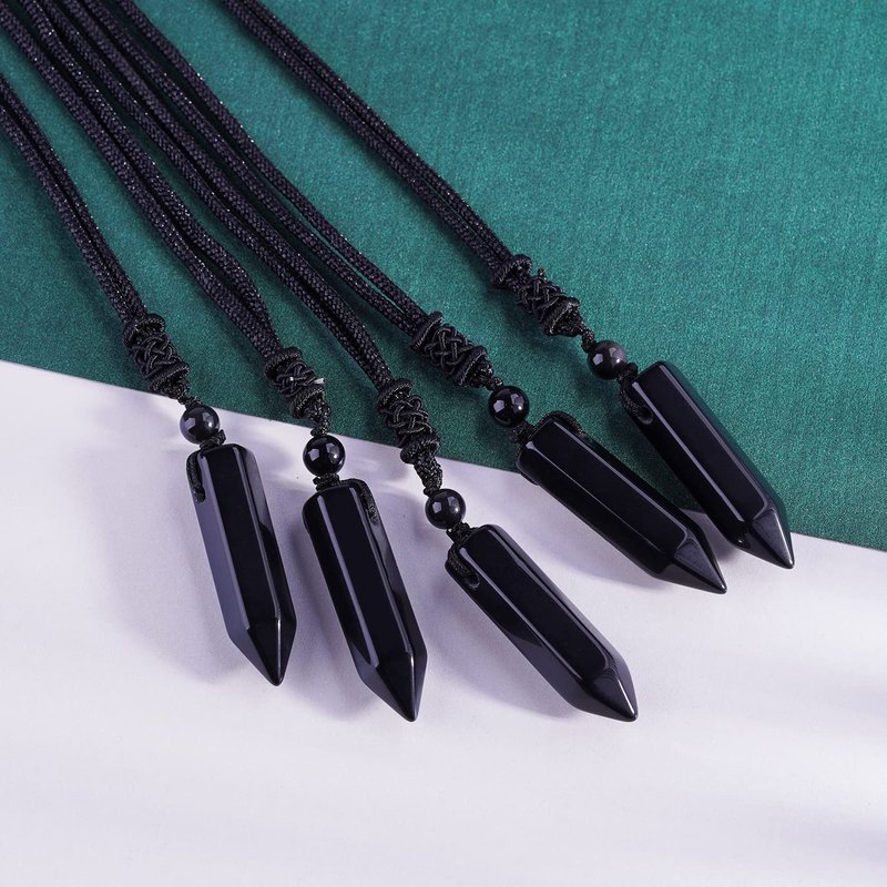 - REIKI BLACK OBSIDIAN CRYSTAL NECKLACE: Crytal brings positive Chakra energies and helps balance your life. Obsidian carries the inherent frequency of protection. Wearing Black Obsidian can help decrease emotional distress and bring wearners good luck and happiness.