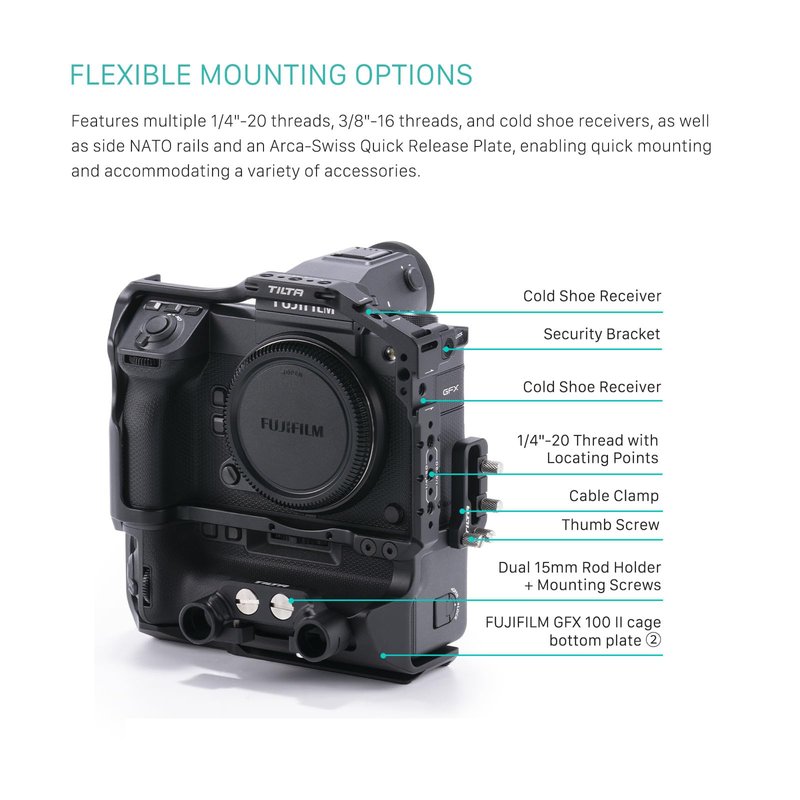 Tilta Camera Cage for/Compatible with Fujifilm GFX100 II - Black | Mount Accessories | Flexible Compatibility | Cable CLAMP | Multi-Tool | (TA-T62-FCC-B)
