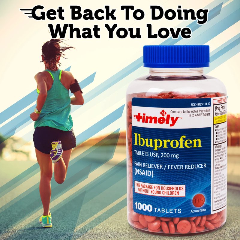 TIME-CAP LABS, INC. Timely Ibuprofen 200mg 1000 Tablets - Pain Relief Tablets and Fever Reducer - for Headache Relief, Menstrual Pain, Tooth Aches, Muscular, Arthritis Pain & Body Aches