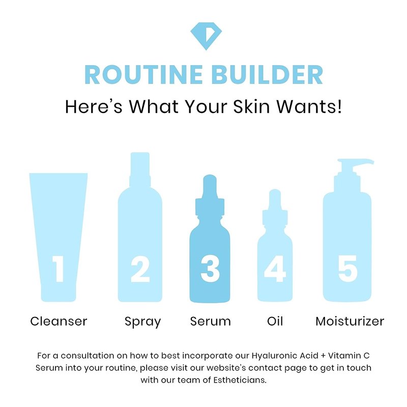 - Hyaluronic Acid Skin Care Serum: Our Hyaluronic Acid serum is formulated to support healthy hydration levels in the skin to help replenish skin volume
