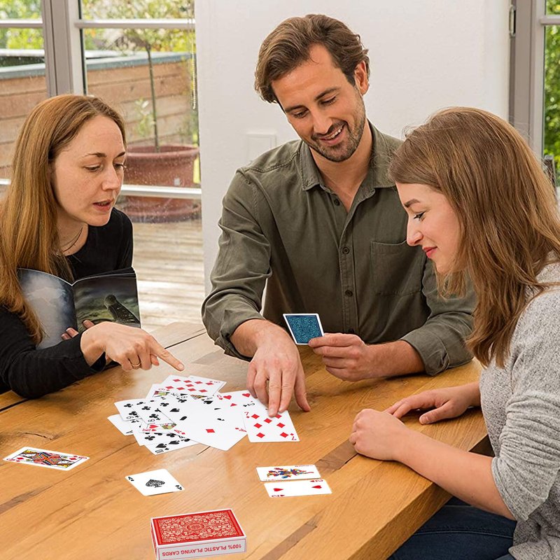 - Funny Games Cards:The classic red and blue backs suitable trick-taking games like Go fish,Old Maid,Blackjack,Texas, Pinochle, Bridge,Nertz,Blitz and more.Playing cards is intended for ages 15 years and older