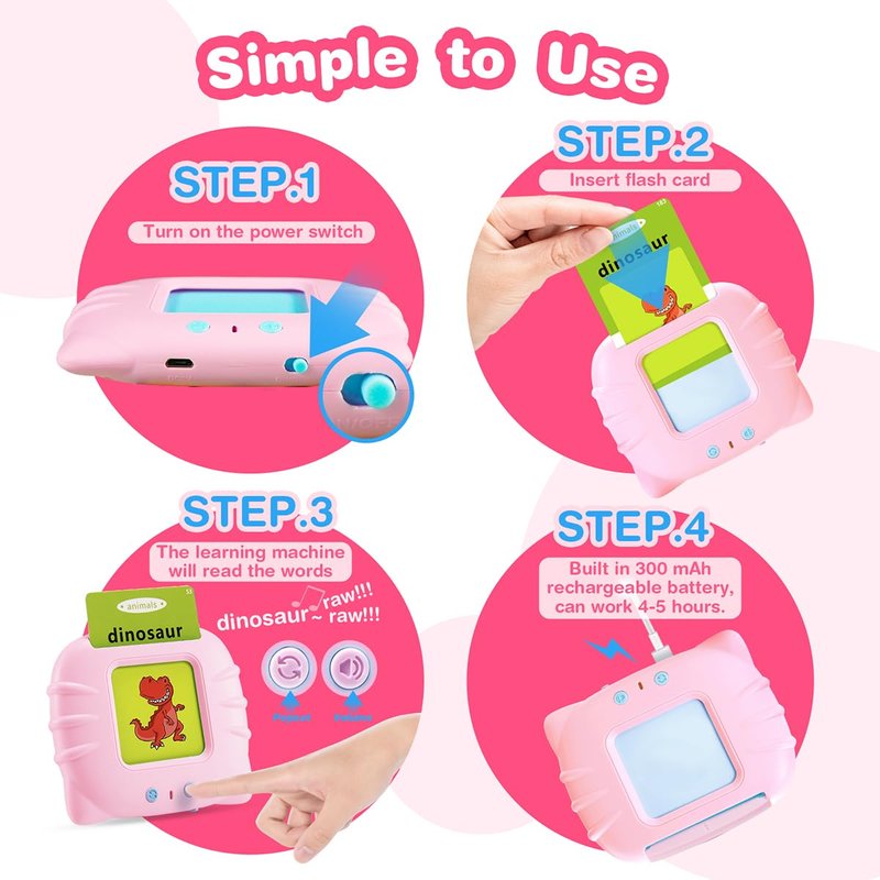 - 💕【Easy to Use 】This Pocket Speech Audible Flashcards is easy for little toddler to use:just insert the cards to reading machine, then it works.A key cycle function, you can repeatedly read and learn, no need to insert the card again.