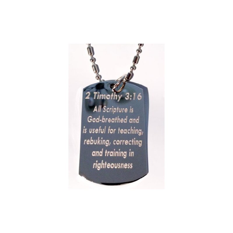 Timothy 3:16 Bible Biblical Verse "All Scriptures ARE God-breathed..." Christ Christian Christianity Logo Symbols - Military Dog Tag Luggage Tag Key Chain Keychain Metal Chain Necklace
