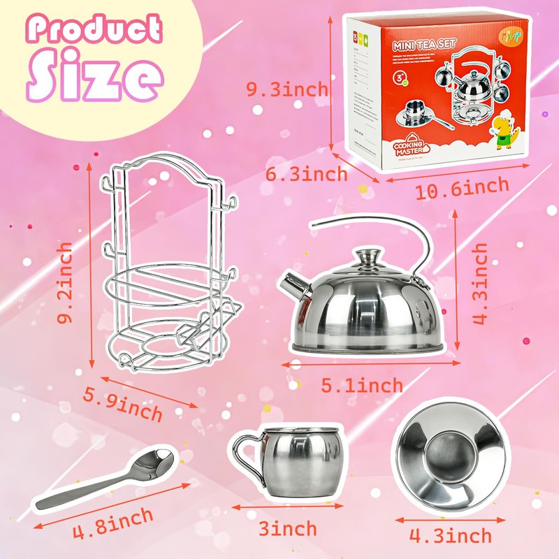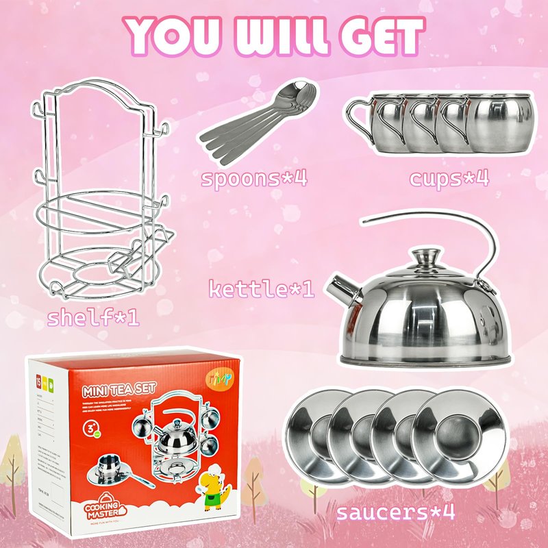 - Steel tea play set is suitable choice for kids, and one of the latest must-have play kitchen accessories; Recommend to 5 years and up.