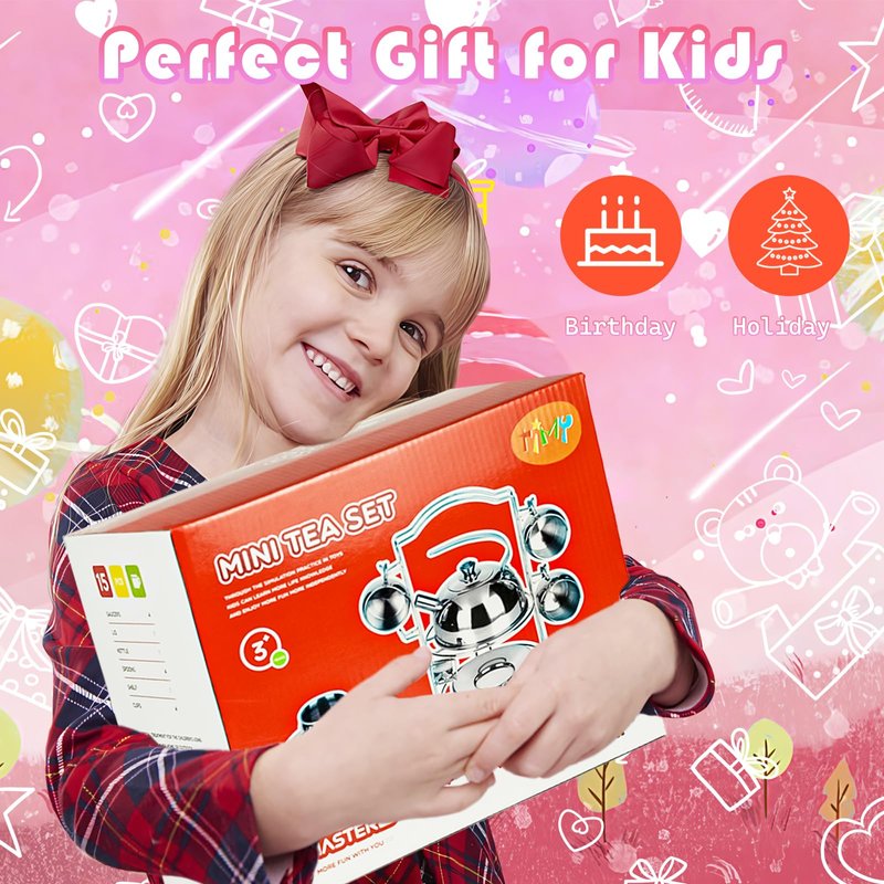 This tea party play set is made of super safe stainless-steel material, which means no BPA, no cracks, and no chipped paint.