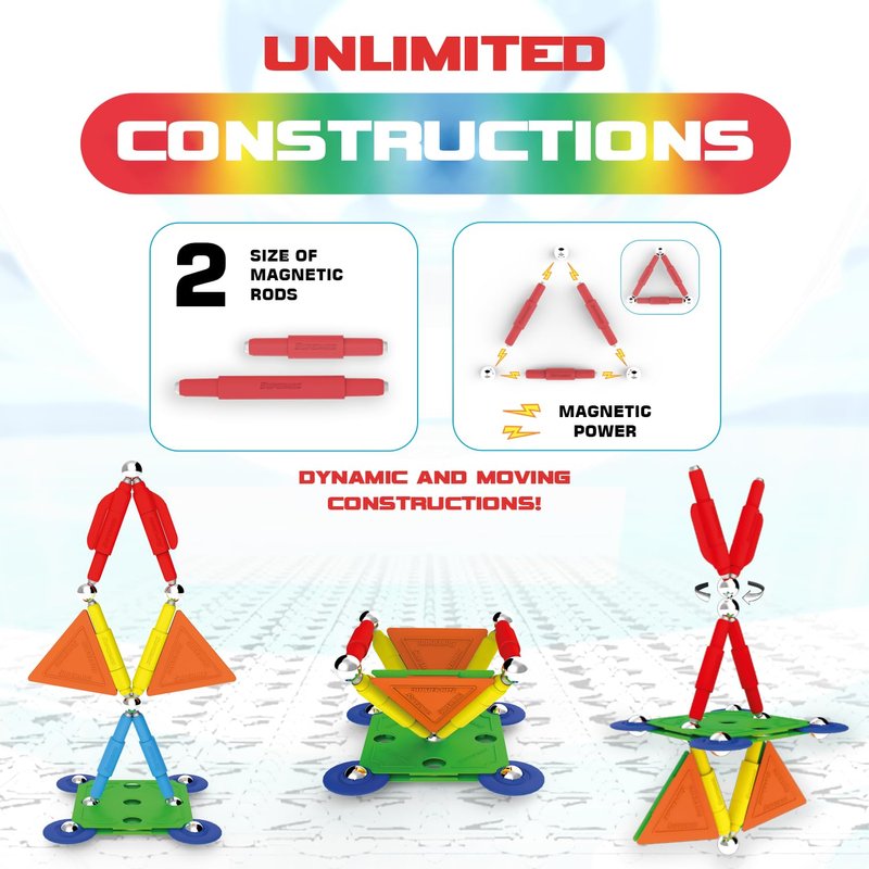 - [ PERFECT LEARNING TOYS & GIFTS ] The colorful magnetic rods and steel balls click together effortlessly, allowing children to build and rebuild a wide variety of structures and models. From simple shapes to intricate designs, the freedom to explore their imaginations and bring their ideas to life is limitless. Experiment with concepts of ENGINEERING, GRAVITY, MAGNETISM and KINETICS as they build!