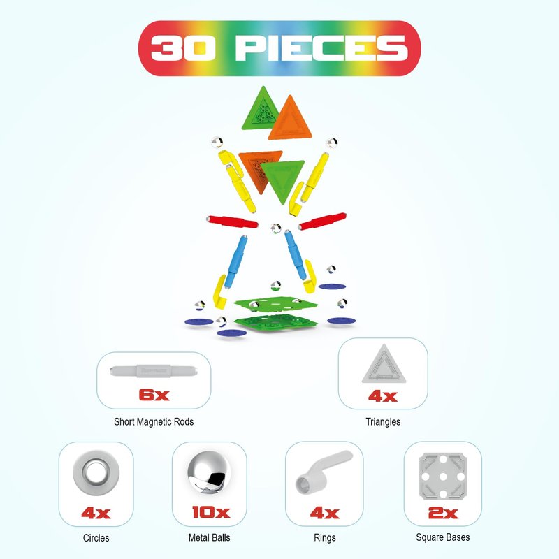 - [ Tinamiri SUPERMAG ] - Multicolor 30 pcs is a one-of-a- kind MAGNETIC construction line. The bright, colorful components can be combined to create cheerful and fun structures, from simple to complex.