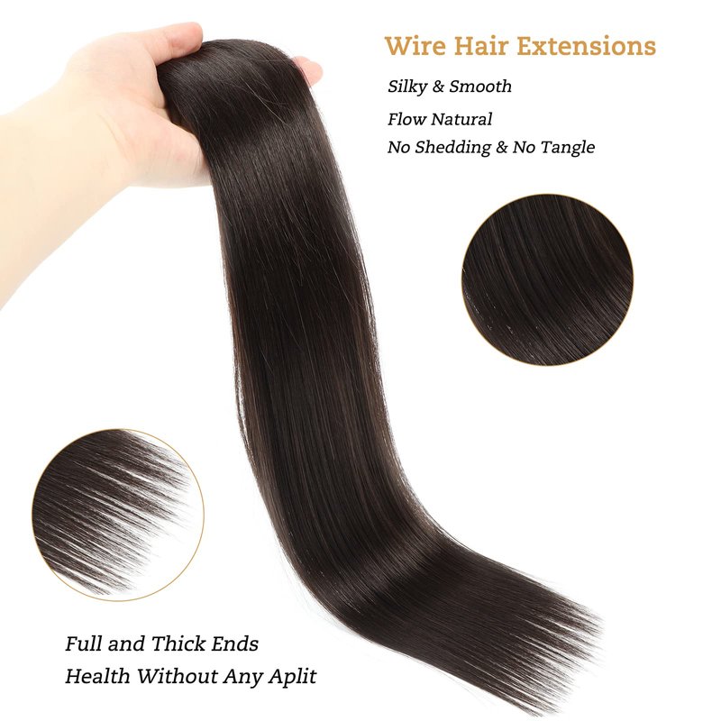- ❤Hair Material: The Wire Hair Extensions is made from real human hair. The cuticle of the hair is intact and faces the same direction. This will reduce the number of knots and knots in your hair extensions and give you more freedom to design your extensions.