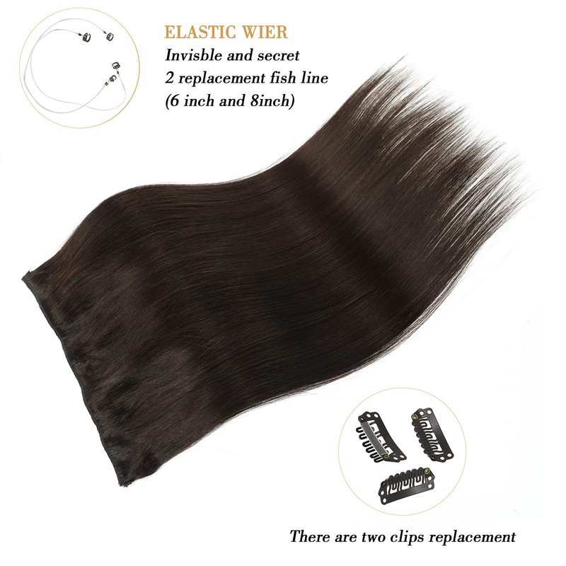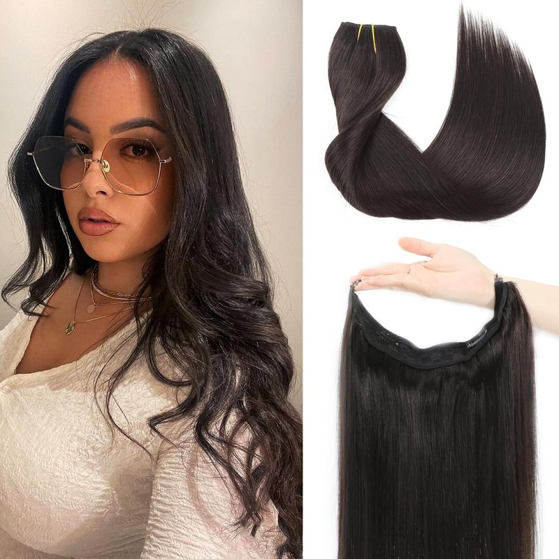 Product Information: halo hair extensions human hair,wire hair extensions,hair halo extensions for women 1. Product Name: Remy Wire Hair Extensions Human Hair. 2. Color: #1B/#4/#27/#613 /#T4/P24/4 /#T2/P6/2/ #1B/6/1B #T4/27 #16/613 #T4/P10/613. There Might Be Some Color Differences Because of Different Monitor or Light. 3. Hair Material: Real Clip in Human Hair Extensions. 4. Texture: Straight and Have a Natural Material. 5. Weight: 14" are 70g. 16" 80g and 18" are 90g, 20" is 100g. 6. Length: 14” to 20”. There is Really Human Hair Just Like Your Own Hair. ★Tangle Free and Shedding Free. Can Last Around 8-10 Months for Good Care. ★Can Be Curled.Can Be Dyed to Darker Color. ★Invisible line. Natural Hair Extensions.