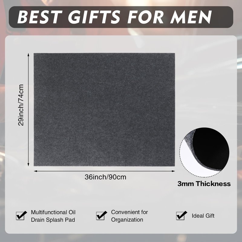 Features: The garage carpet help keep your garage neat and tidy by preventing oil leaks or dirt from your cars from staining floor. Not only do they protect floor, but they also keep the garage area clean and save you precious time on scrubbing and cleaning. These garage rugs, which have a stylish hue, fit effortlessly into your environment. Whether it's in a garage or a home workshop, these mats provide a sophisticated touch while maintaining cleanliness in your workspace. Specifications: Material: felt and rubber backing Color: grey Size: about 29 x 36 inchesThickness: about 0.12 inches/ 3 mmPackage includes: 1 x Garage floor matNotes: Manual measurement, please allow slight errors on size. The color may exist a slight difference due to different screen displays.