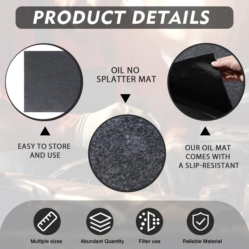 - Non Slip Features: the oil drip mat comes with a non slip, waterproof backing that prevents shifting and resists oil, coolant and gearbox oil spills; This durable and reliable mat protects your floor from break and staining