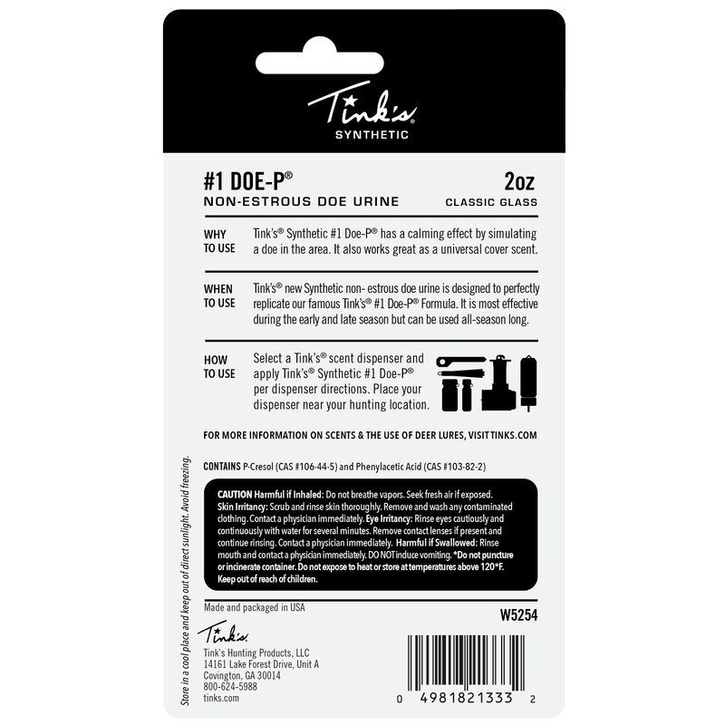 - SYNTHETIC DEER LURE: Perfectly replicates Tink’s famous #1 Doe-P formula
