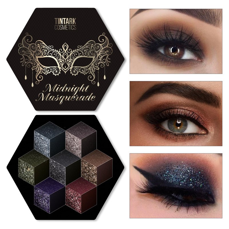 - [Midnight Masquerade]: is a unique and novel 21-color dark eyeshadow palette that oozes mystique and glam, Each eye shadow palette is designed in a rhombic shape, Forming 7 hexagonal patterns respectively, bringing you a Wonderful optical illusion.