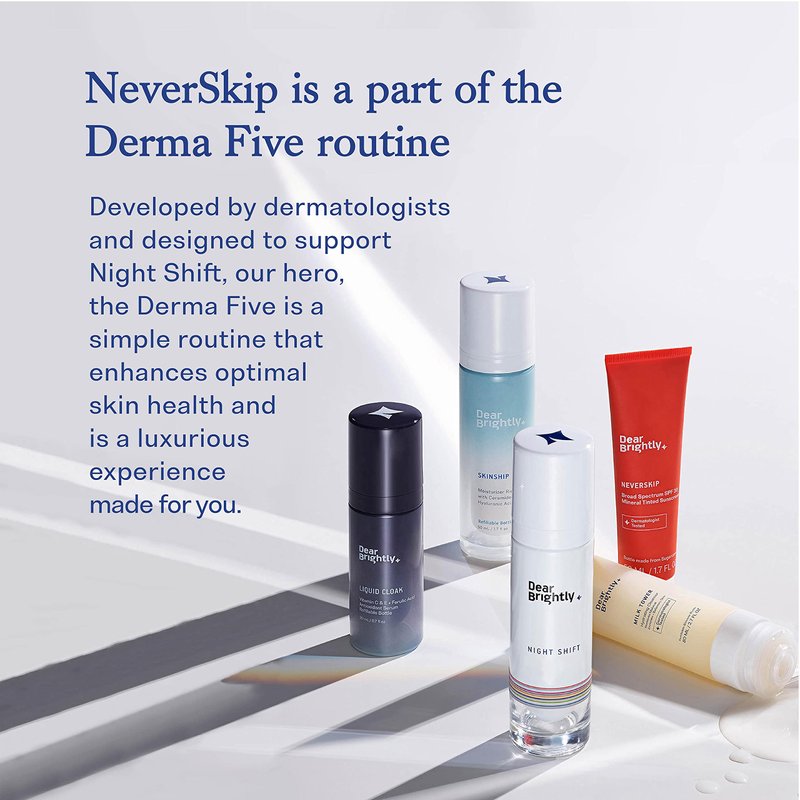 - DERMA FIVE: NeverSkip is part of the Derma Five, a skincare routine inspired by our community’s values. The result is a skincare system that enhances optimal skin health and is a luxurious experience made for you.