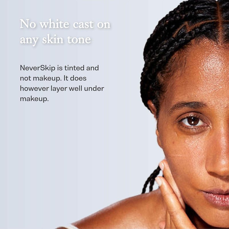 - TINTED FOR EVEN BLENDING & TO PREVENT WHITE CAST: 100% mineral sunscreens leave a white cast, but NeverSkip is tinted to evenly blend and layer well with other products like makeup upon application, leaving no white cast for any skin tone.