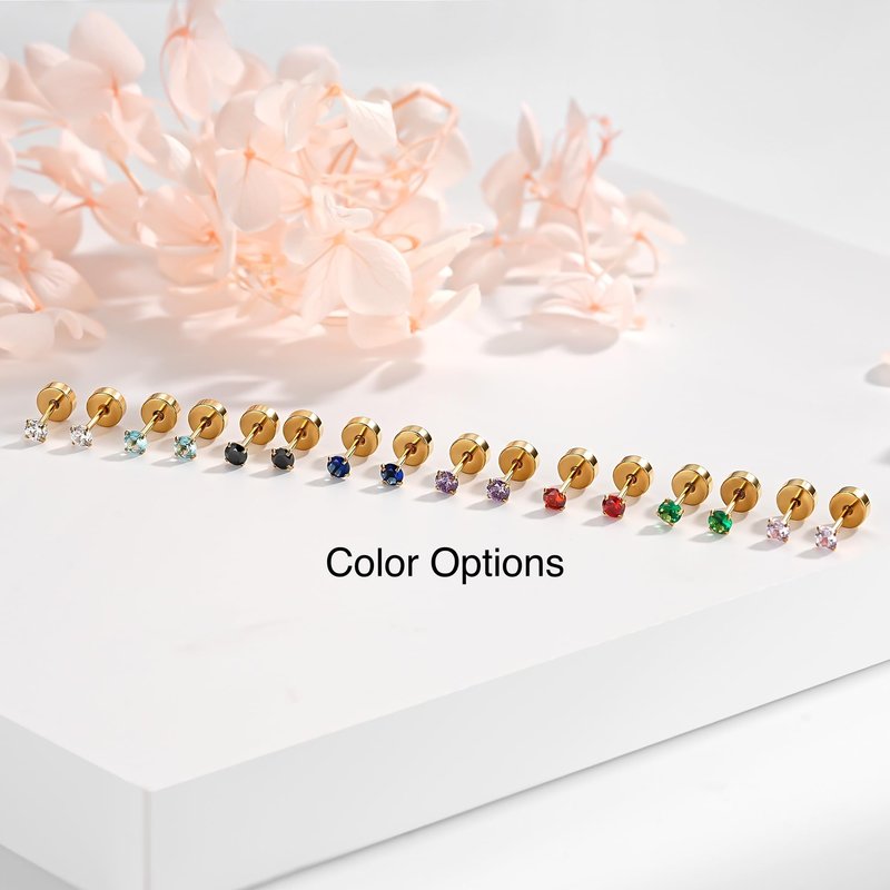 Tiny 3mm CZ Stud Flat Back Earrings for Women 14k Gold | Cartilage Earring Helix Tragus Conch Piercing Jewelry | Screw Back Gold Stud Earrings for Women