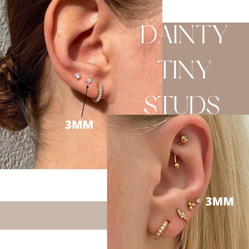 - ✦ Flat Back Earrings ✦ : dainty gold stud earrings for women, this tiny cubic zirconia earrings are trendy and versatile, you can wear this flatback earrings as cartilage earring, helix earrings, tragus piercing jewelry, conch earrings, second hole earrings, ear piercing studs, or stacking earrings, they work for women men girls and toddlers and baby