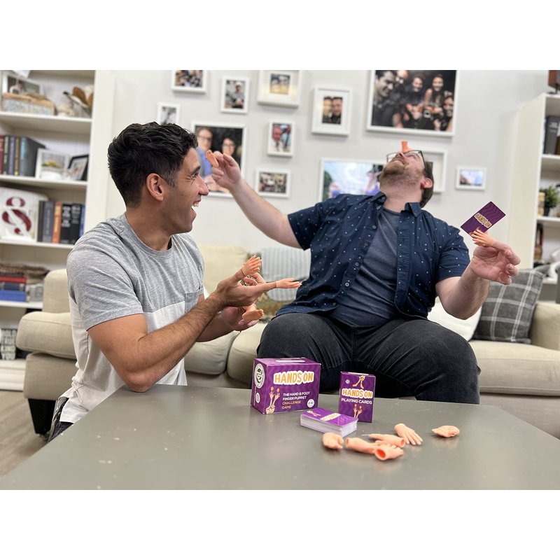 Introducing HANDS ON Challenge Game - Where Mini Hands Mean Maximum Hilarity! Get ready to embark on a finger-sized adventure that'll leave you laughing on the floor! Our Tiny Finger Puppet Challenge Game is a rip-roaring, rib-tickling, and ridiculously hilarious competition that takes playtime to a whole new level. This game isn't your typical "Thumb War." It's a finger-licking good time for all ages! We're talking a high-stakes showdown of the tiniest proportions, where your fingers become the stars of the show. With finger puppets that have more personality than a pack of stand-up comedians, you'll be giggling, guffawing, and gasping in amazement. Each puppet is a pint-sized performer with a distinct character and a flair for the dramatic. But here's the twist: it's not just about the puppets. It's about your nimble fingers, your quick reflexes, and your ability to master the tiniest of challenges. HANDS ON will have you twisting, twirling, and laughing your way to victory. Perfect for family gatherings, game nights, or turning a mundane afternoon into an uproarious puppetry spectacle. The Tiny Finger Puppet Challenge Game is a must-have for anyone who loves laughter, silliness, and a little friendly competition. So, if you're ready to turn your fingertips into the funniest performers around, grab your set today. It's time to let the hilarity unfold, one tiny finger puppet at a time! Ready, Set, HANDS-ON!