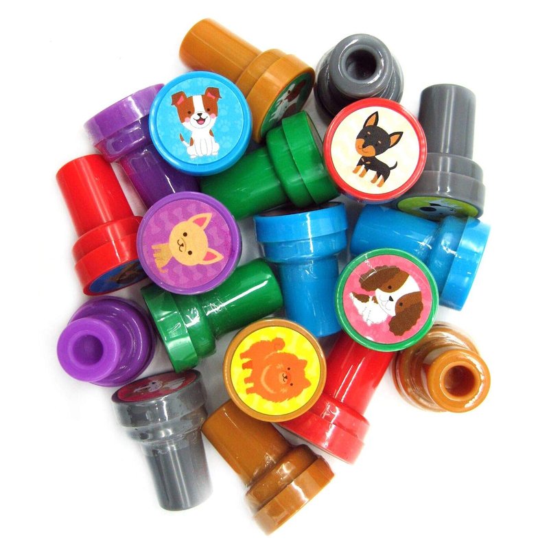 Show your love of dogs with this cute 24 pcs dog stampers assortment. Every stamp is a different dog to show your PAW-proval! These colorful, cute stampers will make perfect party favors for celebrating a dog theme or even your OWN dog's birthday! These stampers are perfect for creating your own greeting cards, scrapbooking and decorating stationery. Have this stamp assortment at home, in the classroom, or in art class! Stamps are non-toxic, lead-free, have passed all CPSIA and ASTM testing. Safe for children to use. 1.5 inches tall, 1 inch in diameter.