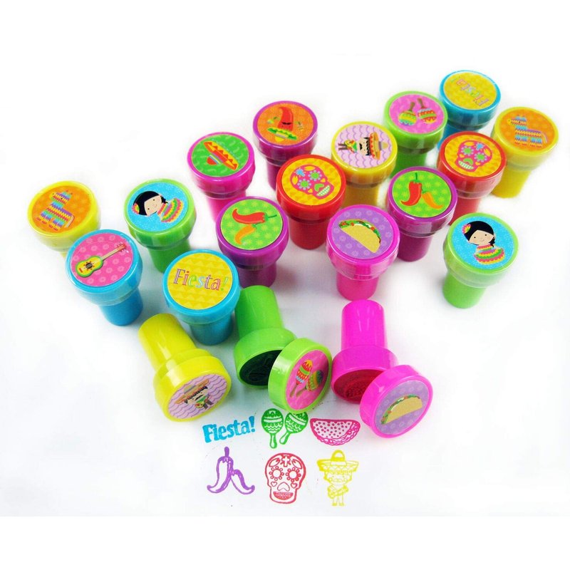 Tiny Mills 24 Pcs Fiesta Stampers for Kids, Birthday Party Favors, Pinata Fillers, Goody Bag Filler Treats, Classroom Rewards, Cinco de Mayo Party Favors