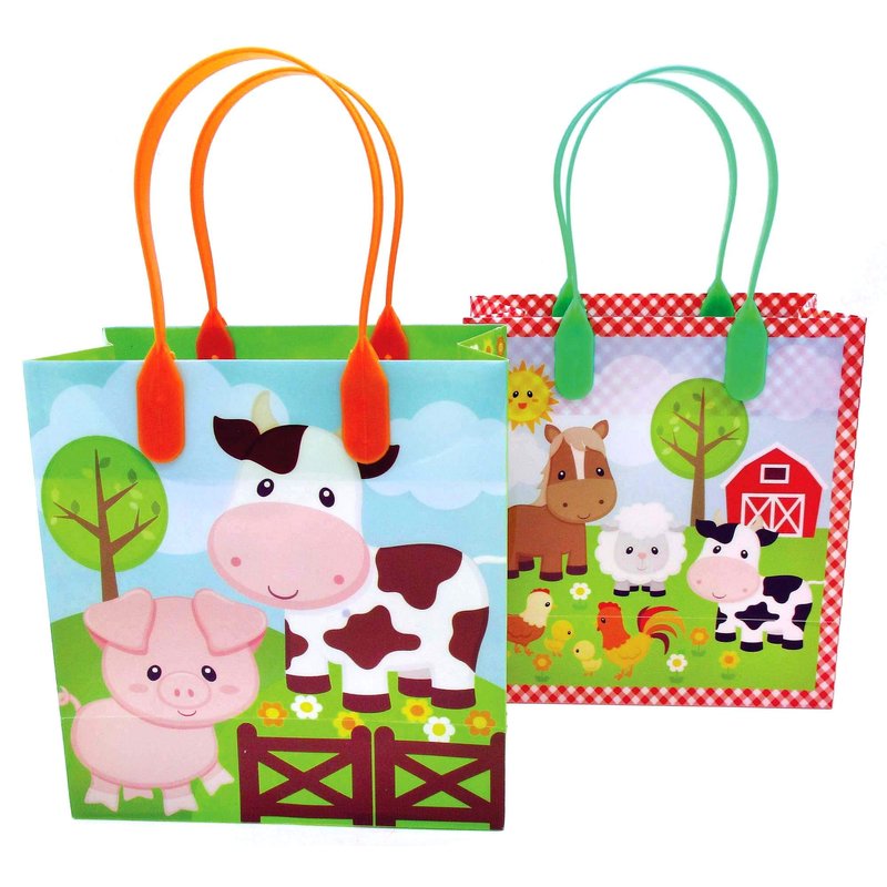 - These party bags for kids birthday are sturdy, lightweight and rip resistant! No more broken treat bag handles! Farm sets for kids with barn bags have handles so it's easy for your guest to carry the party favors around.