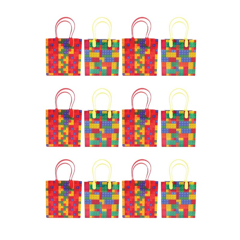 Tiny Mills Building Blocks Brick Party Favor Bags Treat Bags with Handles Birthday Party Goody Bags Candy Bags Pack of 12