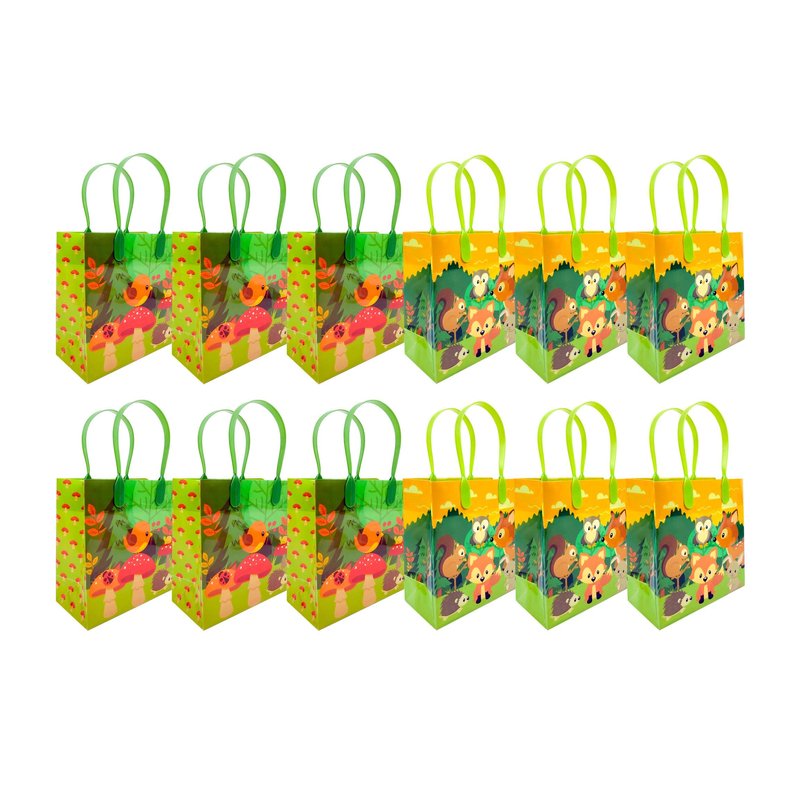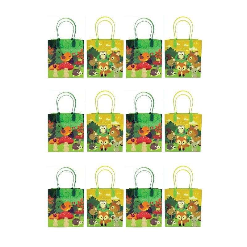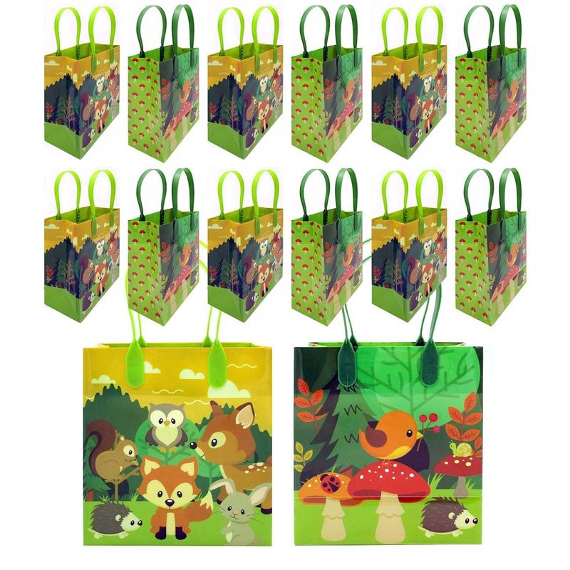 Tiny Mills Woodland Animals Forest Creatures Critters Party Favor Bags Treat Bags with Handles, Candy Bags for Birthday Party Bags Party Supplies,12 Pack