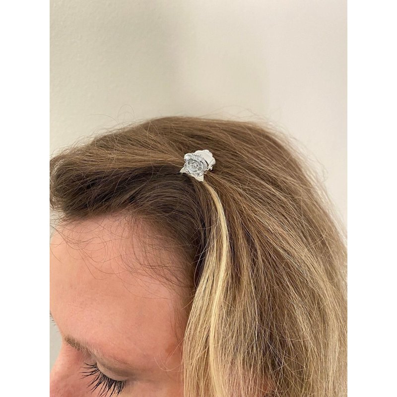 Tiny mini silver metal silver flower hair claw clip