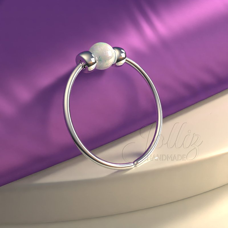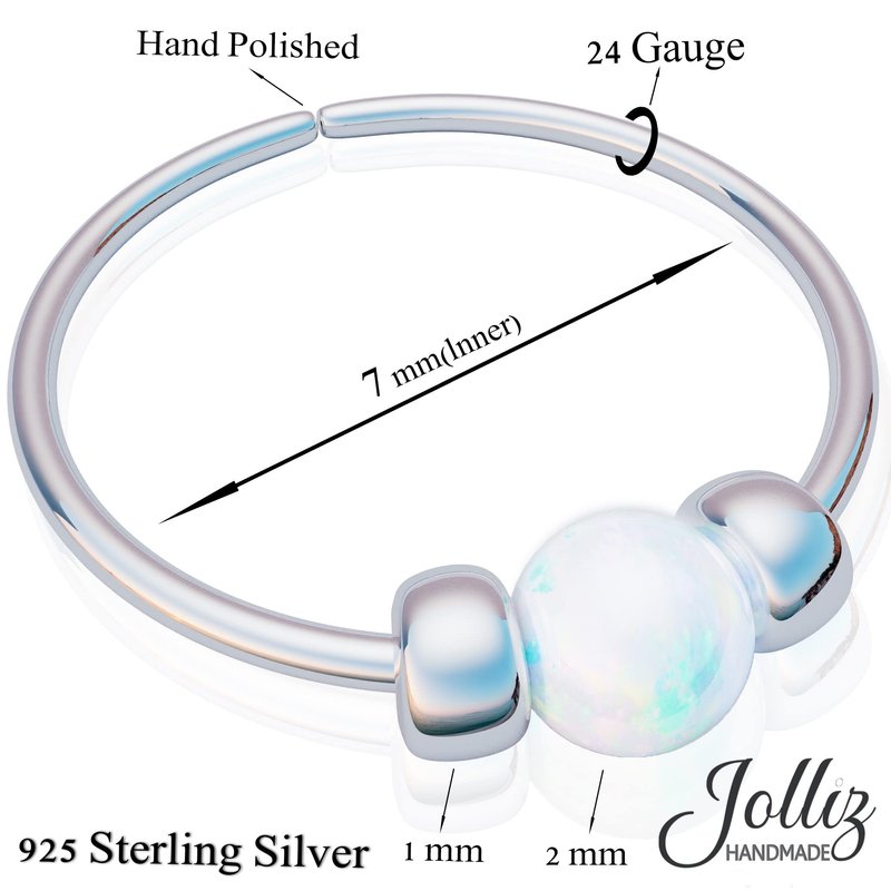 Tiny White Opal Nose Ring – Thin 24 Gauge 7mm nose piercing hoop - 925 sterling silver Nose Hoop – Fire White 2mm Opal - Dainty Gift Wrapped Ready Purchase