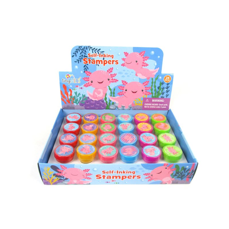 TINYMILLS 24 Pcs Axolotl Stampers for Kids Birthday Party Favors Bag Stuffers Pinata Fillers Classroom Rewards Carnival Prizes Gifts