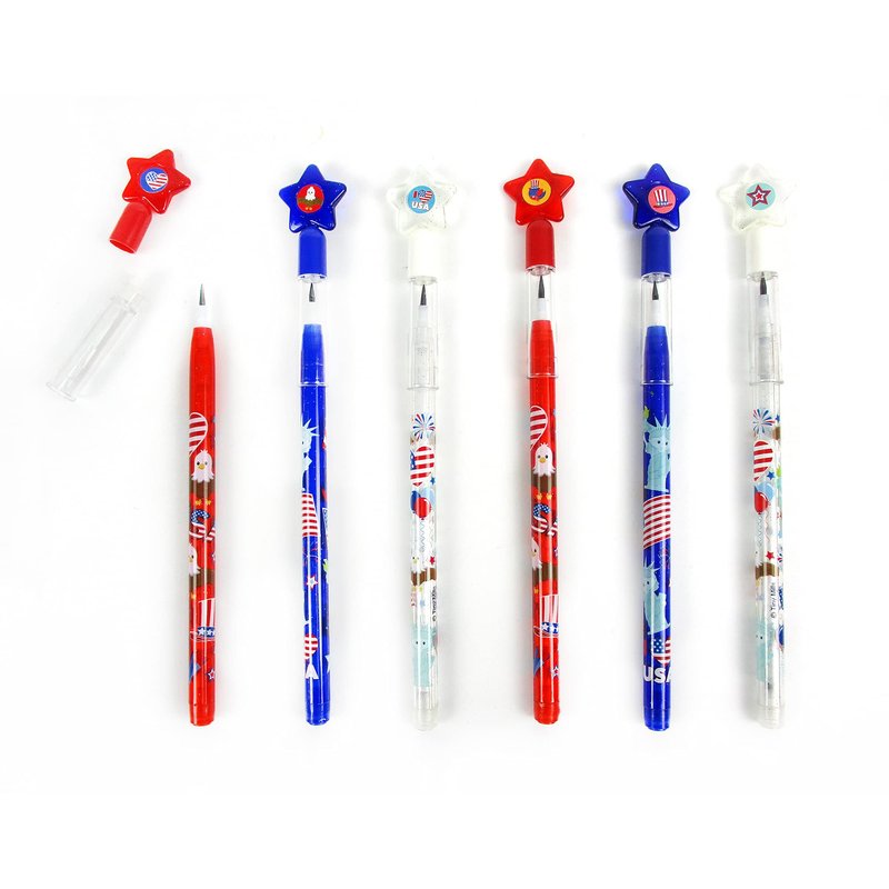 Great 4th of July party favors to give out any 4th of July celebrations such as parades, bbq's, pool parties and more! These 4th of July pencils are not junk. Your guests will be able to use them after 4th of July have passed! These multi-point pencils are perfect as party favors or giveaways! Each box contains 24 pencils with 11 leads per pencil. Push the used lead on top and a new lead pops out in front! you will never have a dull pencil or need a sharpener again!