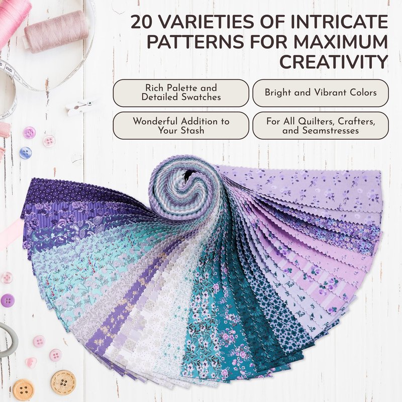 - 🌼 RICH PALETTE and DETAILED SWATCHES - 20 ASSORTED FLORAL PRINT | 2 STRIPS (2.5 INCH x 44 INCH) PER PRINT | TOTAL 40 PIECES PER ROLL - Every bundle comes with 40 jelly roll strips, two strips per print, and features intricate details, vibrant colors, and ultra-softness for sewing quilts, blankets, purses, furniture upholstery, and other DIY projects.