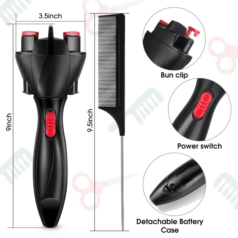 - What You Will Receive: the package comes with 1 piece black hair braider machine (Note: powerd by 2 AA batteries, NOT included) with 1 black USB cable, and 1 piece black steel rat tail comb; The tail comb for picking and combing hair before tangling hair with hair braider