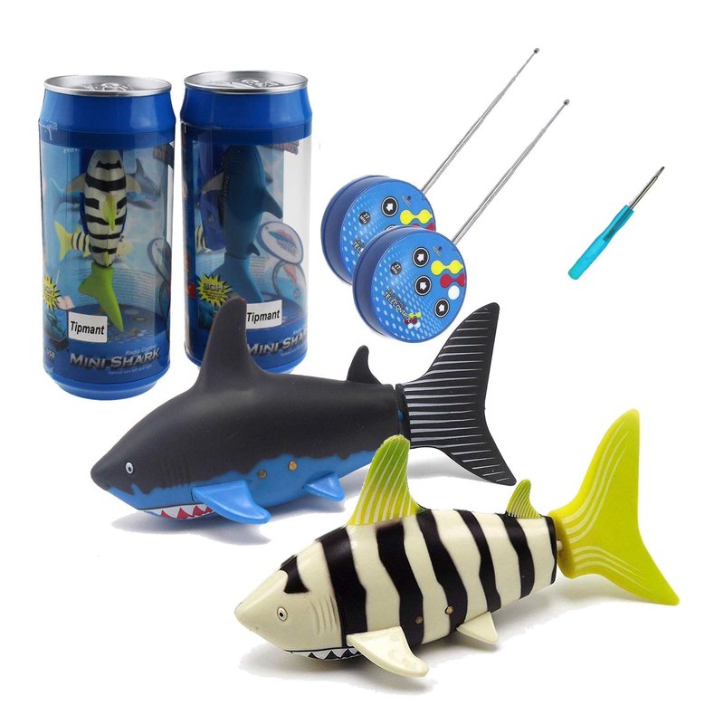 Tipmant Mini RC Fish Shark Toys Remote Control Boat Ship Electric Electronic Pet Animal Swim Water Pool Tub Bathtub Kids Gifts - 2 Pack