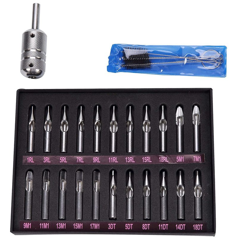 Tattoo Tips Stainless Steel Tubes Kits, 22pcs Assorted Tattoo Stainless Steel Tip Kit with 1 pc Stainless Steel Tattoo Machine Tube Handle Grips,Cleaning Brush,and Tattoo