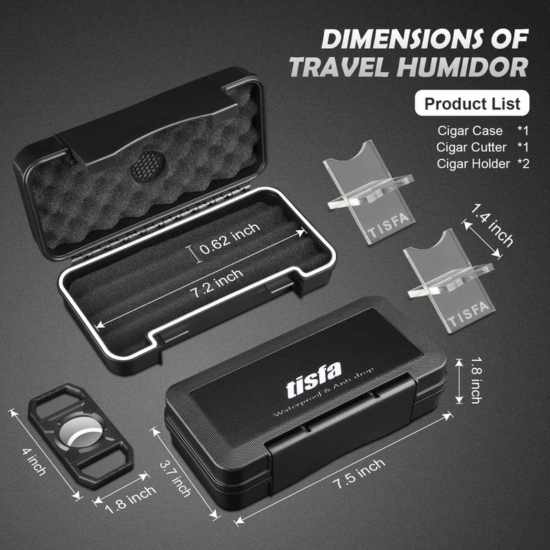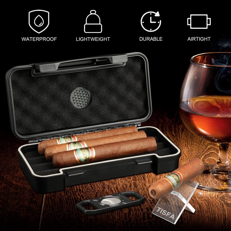 TISFA Cigar Travel Humidor Case with Cigar Cutter and Cigar Stand, Portable Cigar Humidor, Waterproof Cigar Box Holds up to 4 Cigars - Cigars Gift Set for Men (Small)