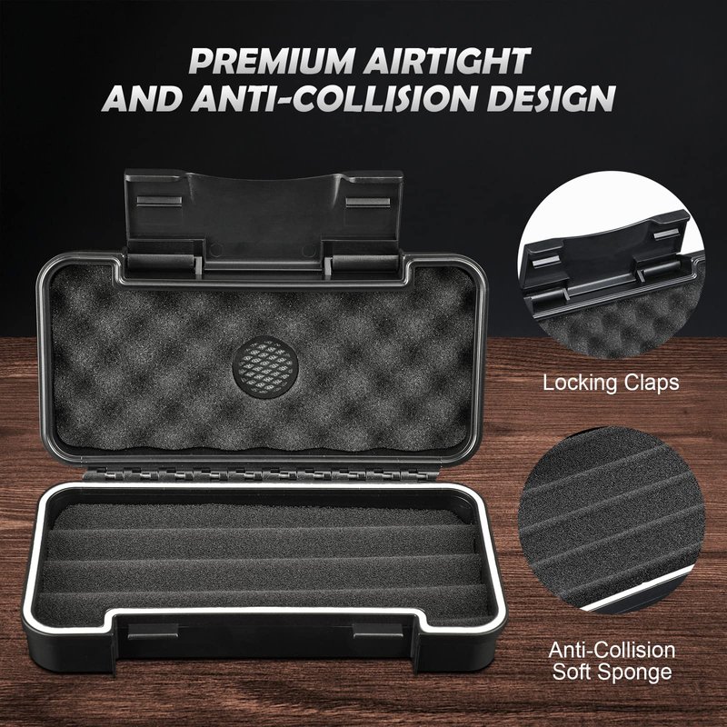 - 【Quality Construction】Our cigar travel humidor case is made of sturdy ABS material, airtight and WATERPROOF with a strong locking clasps and inner seals. CRUSHPROOF exterior for ultimate durability with inner foam cushioning to protect your precious cigar cargo, can holds about 3-4 cigars(Depend on your cigar), so it is the perfect choice for all your outdoor activities, such as camping trips, fishing, boating, golfing and for everyday use (Cigar is not included).