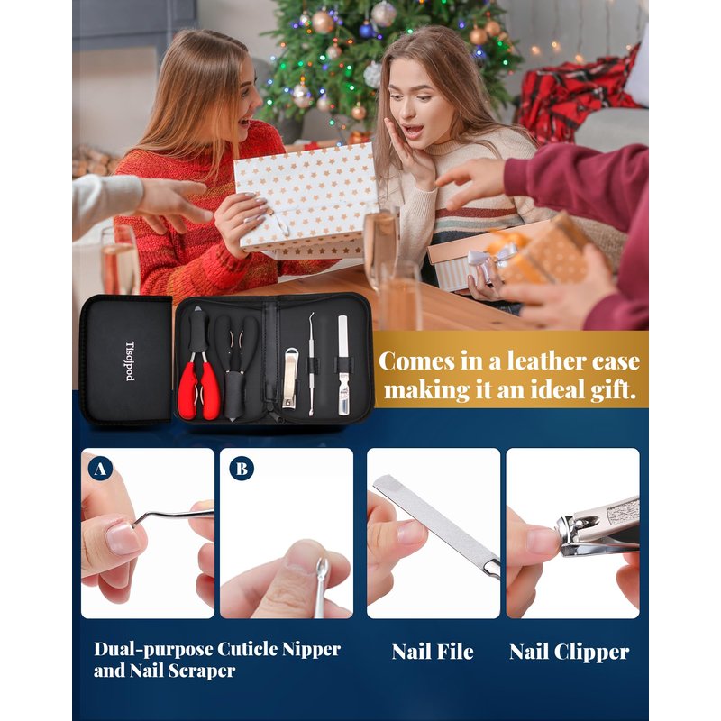 - [The most cost-effective gift]Do you or your friends suffer from ingrown toenail pain? This exquisite set of nail clippers might solve your problem. It is suitable for all old people, men and women to use at home. With an emphasis on quality at affordable prices, we've streamlined and packed all our tools into a small leather bag for easy storage and portability. If you have any questions, please feel free to contact us.