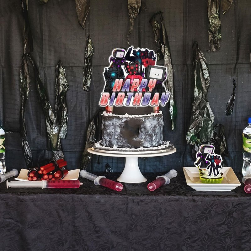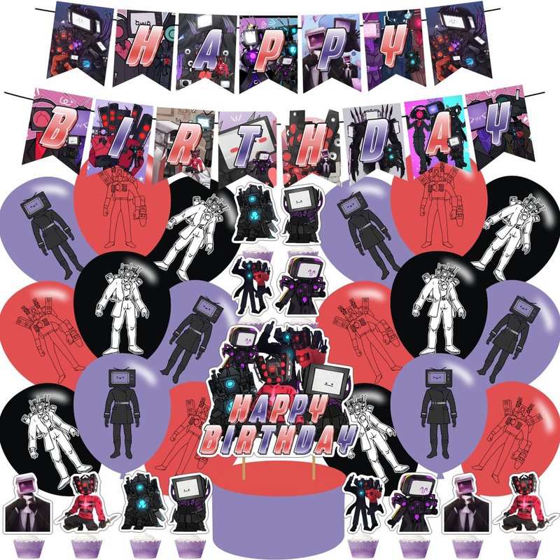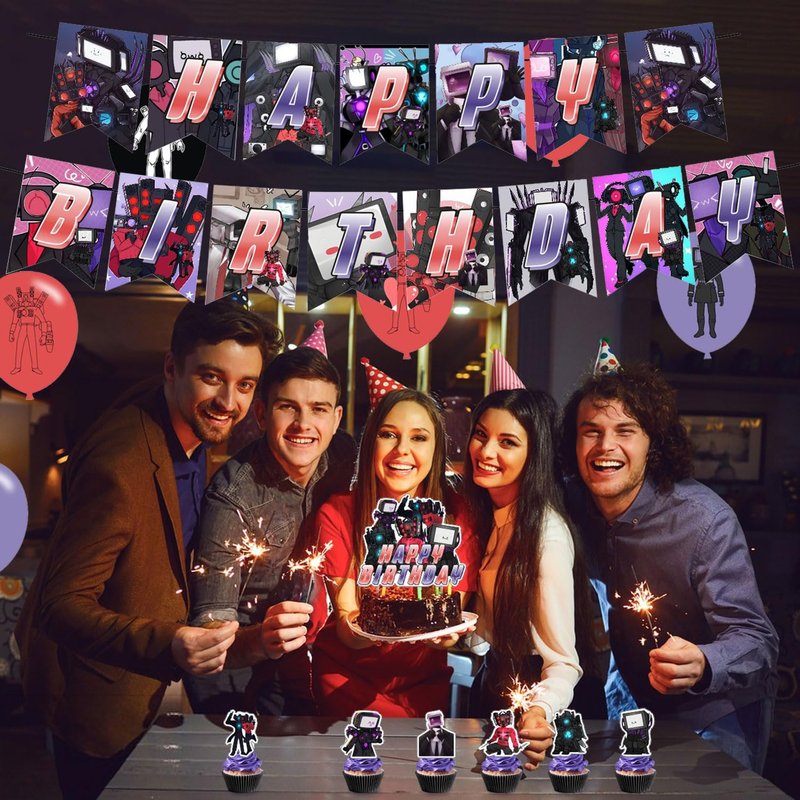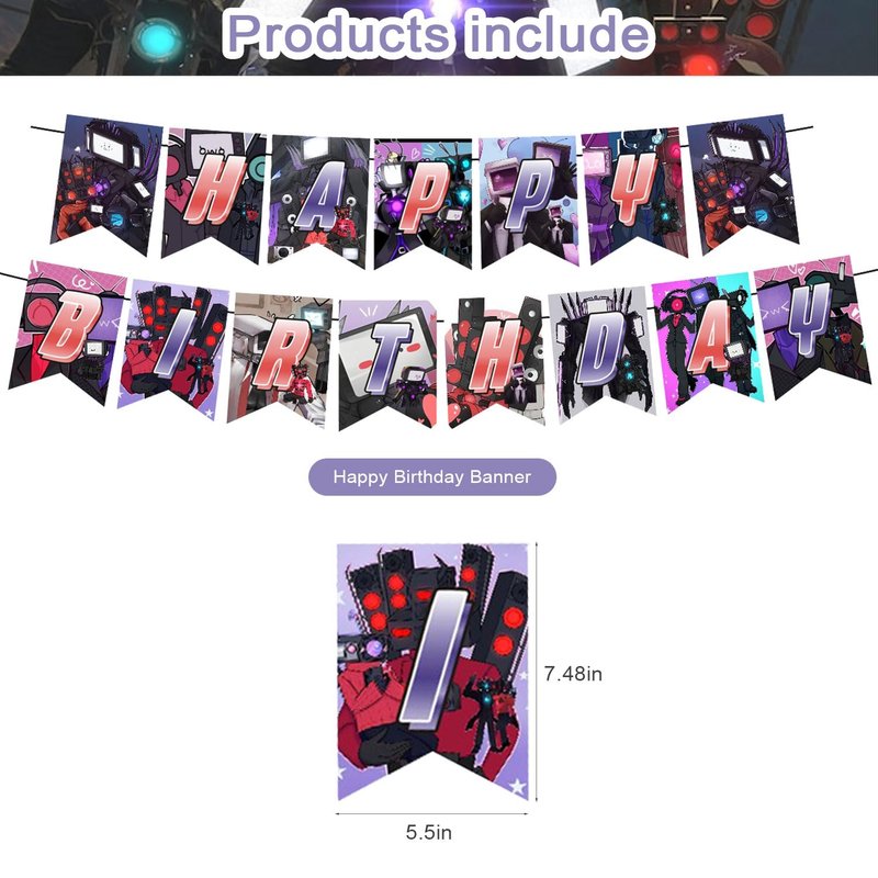 - A Nice Combination: Our Titan TV Man birthday decoration set include 1pc banner, 1pc cake topper, 12pcs Cupcake topper, 18latex balloons with 3 different colors, it is large enough for the birthday party decoration and photography. This is perfect for any kid's party! It is a cool gift for kids or friends who loves this theme, and all-in-one pack is easy to carry, enjoy your birthday party.