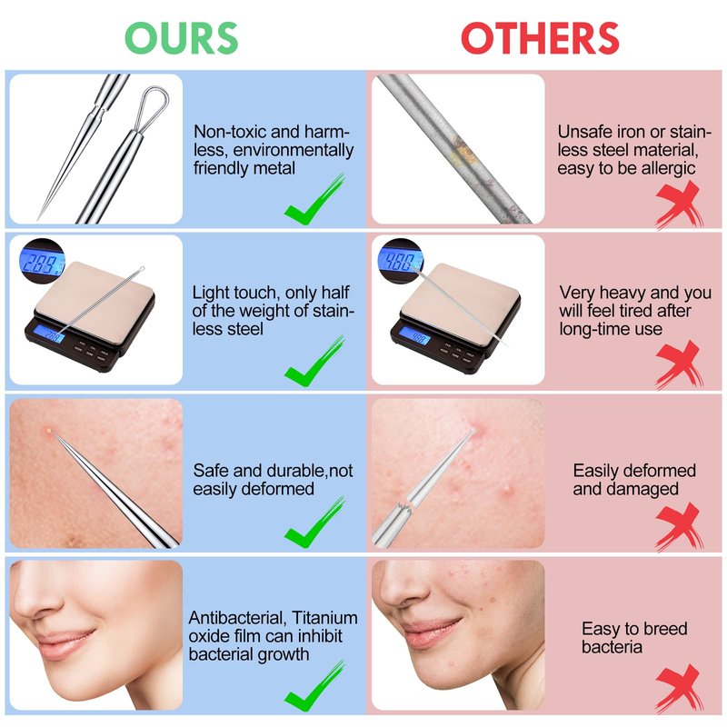 - Ideal for Facial Blemishes Extraction: these titanium alloy pimple needles are pointed and easy to use, ideal for blackhead, whitehead, comedones and other blemishes extraction, nice helpers in your skincare process