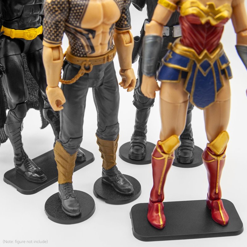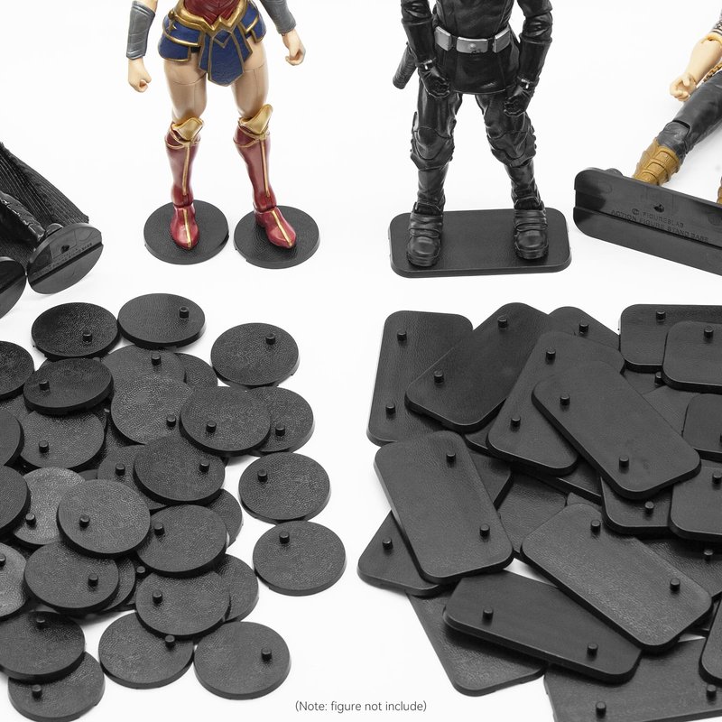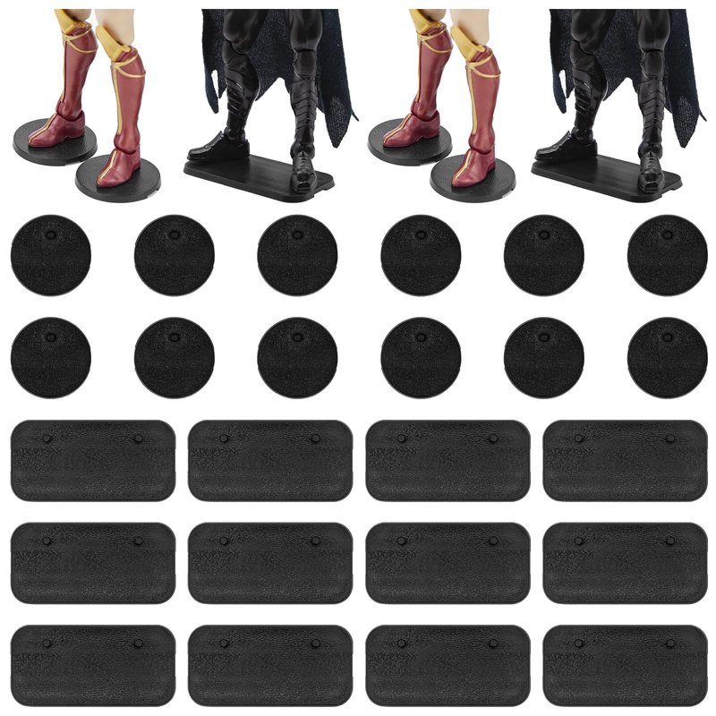 - PACKAGE INCLUDES: You will get 24Pcs black mix action figure display stands.(NOT INCLUDED figures) There are 12 square shapes and 12 round shapes action figure display stands. You can display your favorite figures on it. The lightweight size is easy to store and carry; once you get the product, you can use it directly, eliminating the hassle of installation.