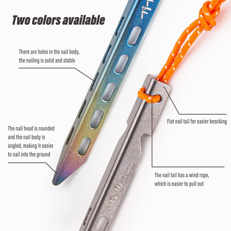 2:Titanium alloy tent nails are corrosion-resistant and durable, especially suitable for grassland and sandy beach.